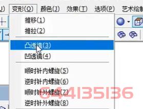2、启用变形工具中的“凸透镜”功能