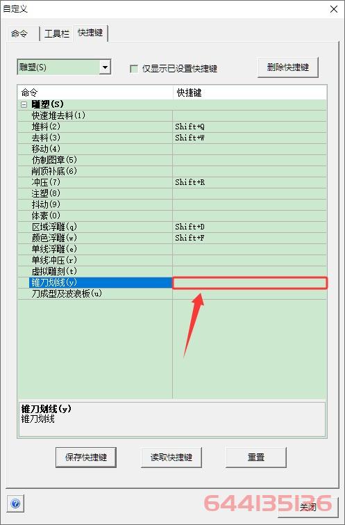 精雕软件默认的部分功能未设置快捷键,例如常用的锥刀划线功能,频繁操作时不够便捷。建议自定义设置快捷键以提高操作速度: