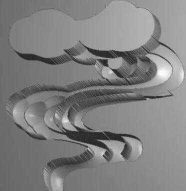 冲压层固化后,云层生成状态是处于固化层表面再进行的祥云浮雕,而冲压层没有固化的时候就进行祥云浮雕的话那么生成的祥云浮雕直接避开作为流动层的冲压高度,在原始模型基底进行操作,导致模型错误。