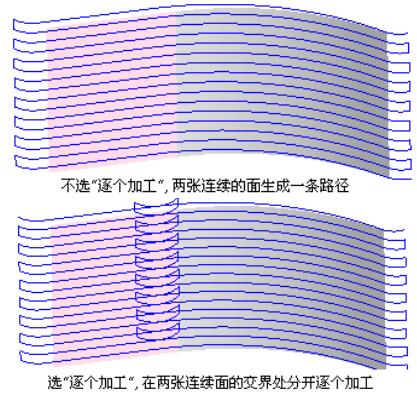 选择该选项几张连续的曲面分别按各自的方向计算。如图: