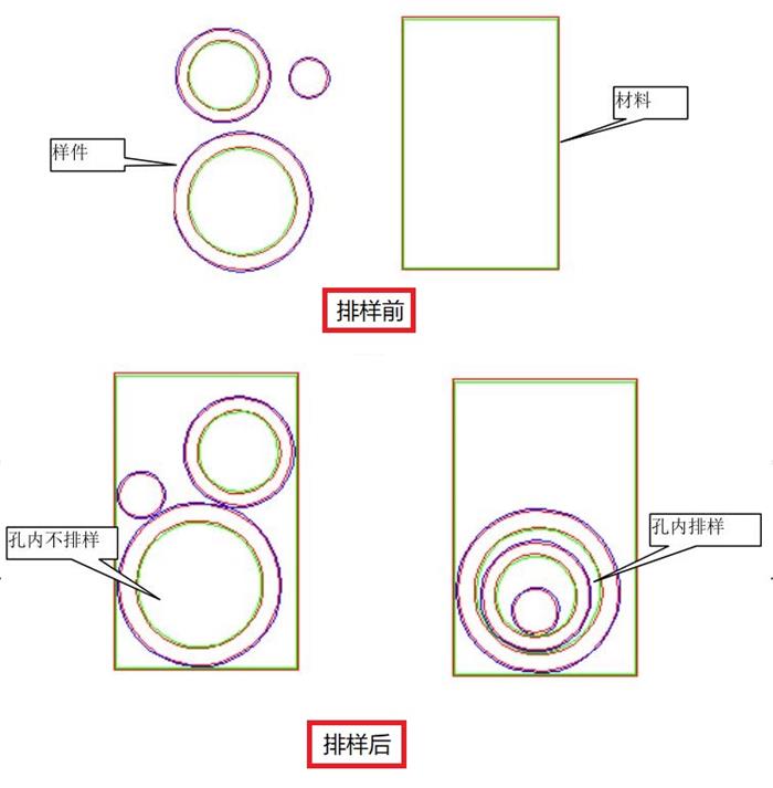 自动进行排样优化计算,将样件紧凑地摆放到材料边框内。